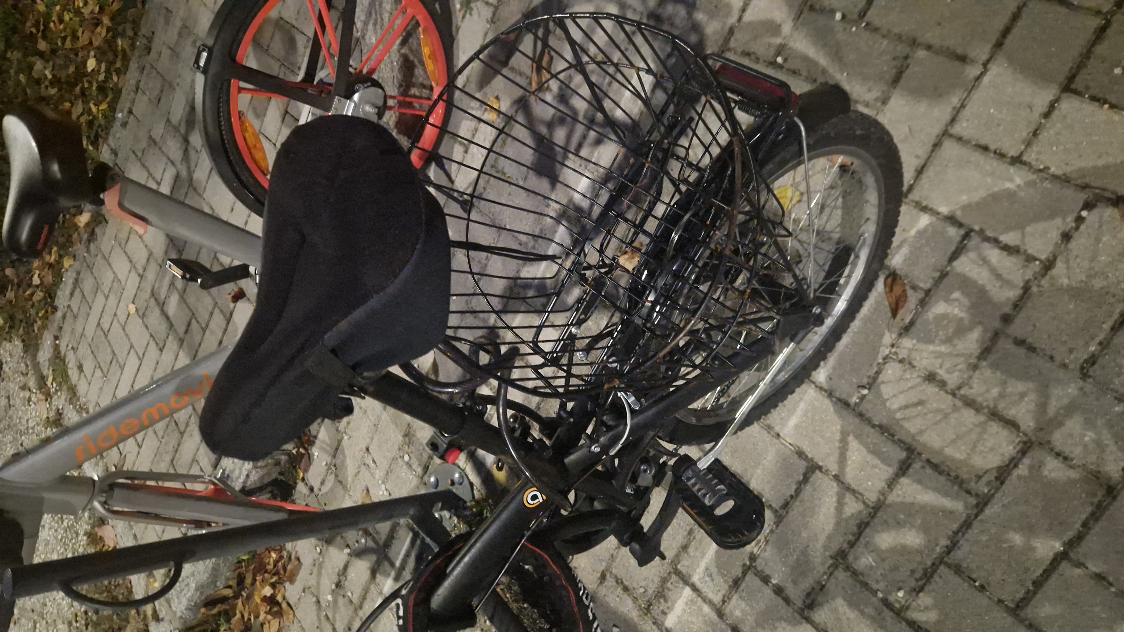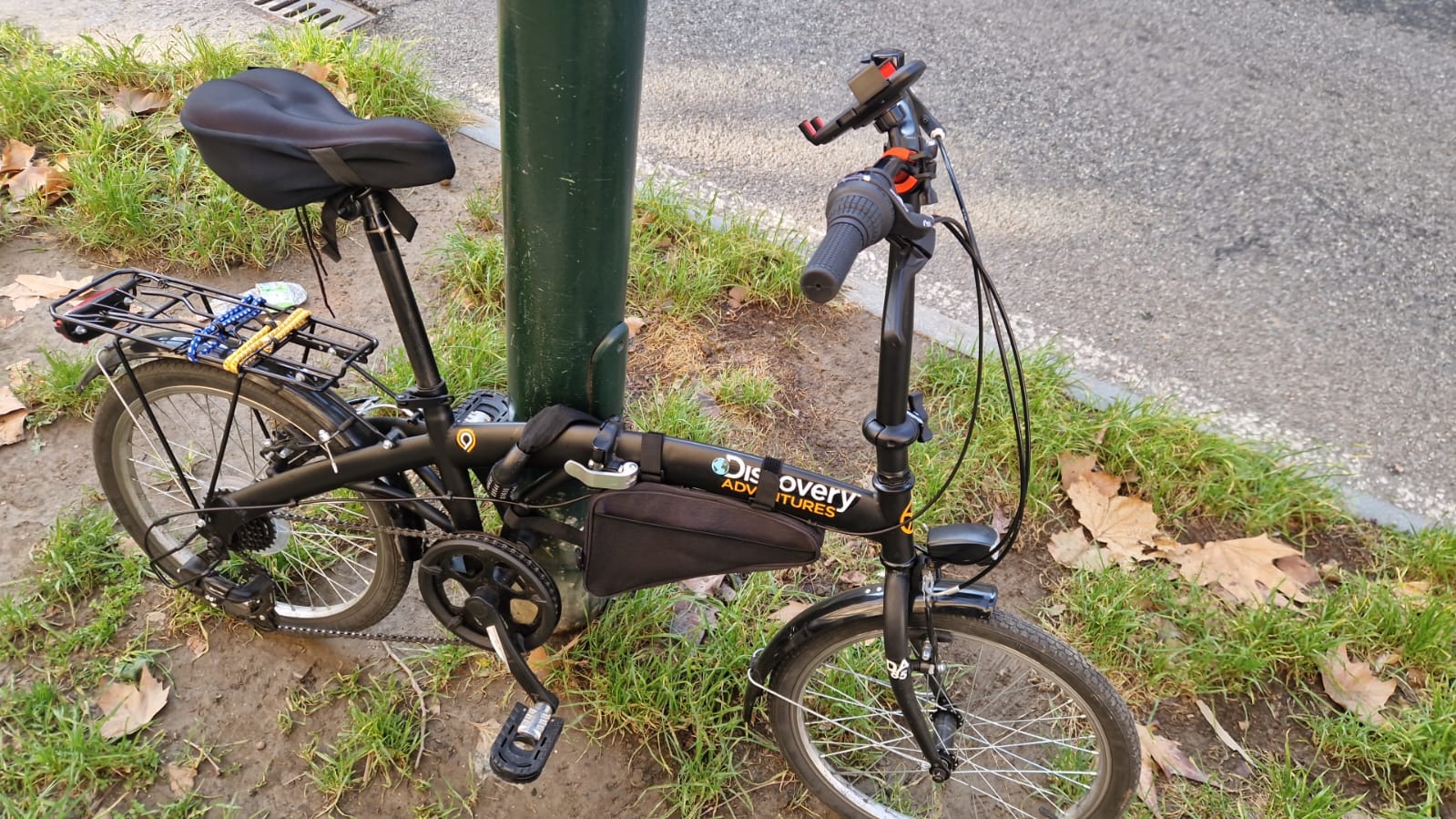 Porta telefono rosso sul manubrio, e cestello nero sul retro